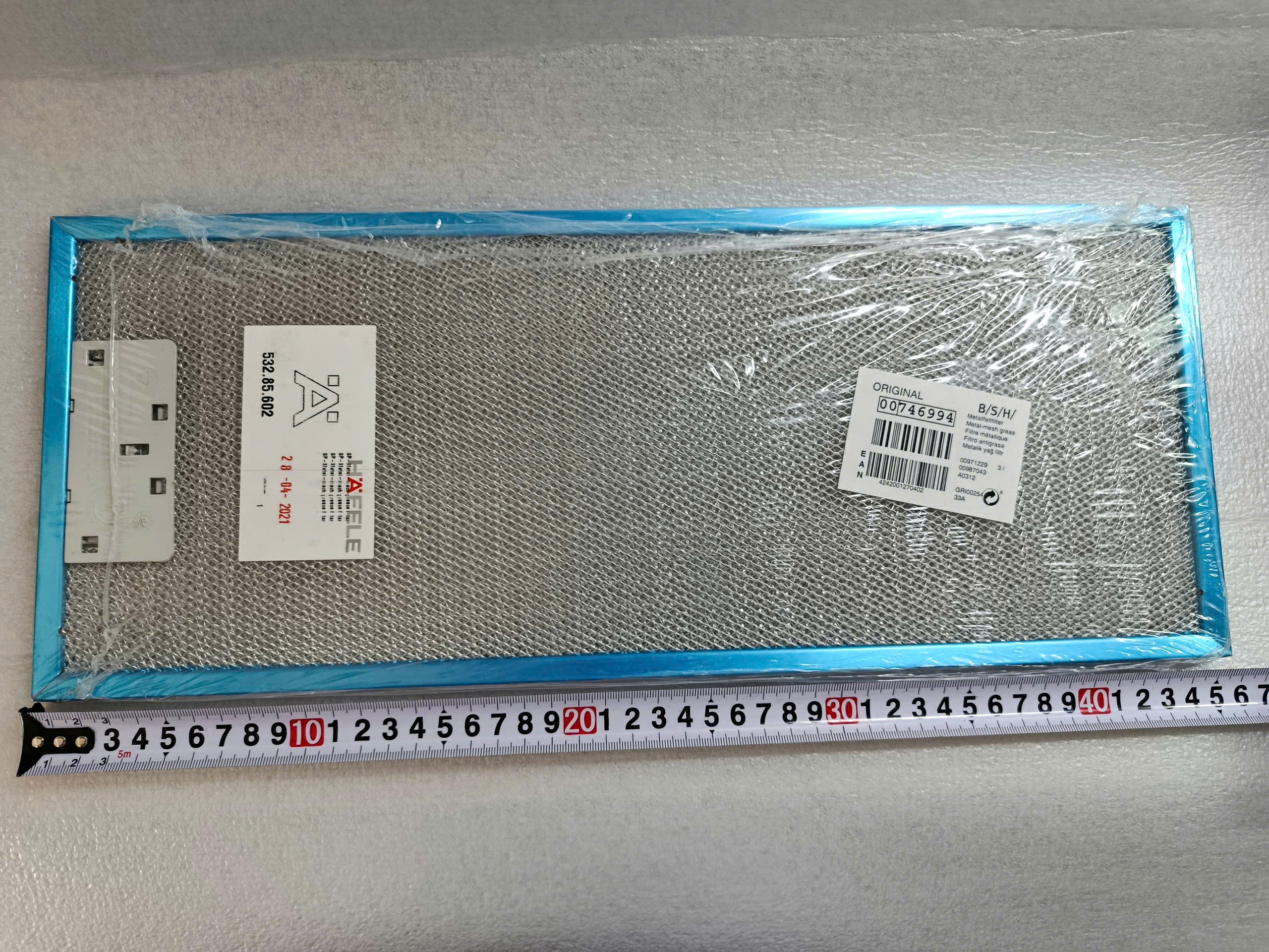 LƯỚI LỌC MỠ MÁY HÚT MÙI HAFELE HH-TG60E (539.81.073) (532.85.602) (18x45 cm)